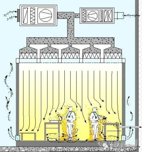 美國(guó)FDA和歐盟為微生物污染制定了非常嚴(yán)格的指導(dǎo)方針和限值,也可以使用空氣處理器和風(fēng)扇過(guò)濾單元之間的增壓室以及粘性墊。對(duì)于需要A級(jí)空氣的無(wú)菌室,氣流是從上到下的,并且是單向的或?qū)恿鞯?,保證空氣在接觸產(chǎn)品之前未受到污染。